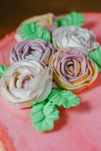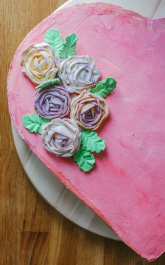 Specjalne zamówienie na 6 urodzinki Zuzi. Były konkretne wskazówki co do smaku i kształtu. Biszkopt kakaowy, przełożenie z bitej śmietany oraz wiśni. Całość wykończona maślaną masą i udekorowana maślanymi różami.