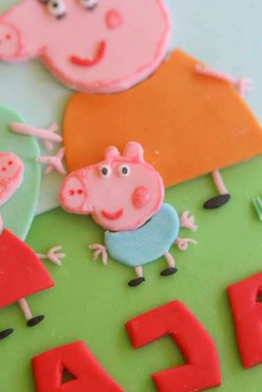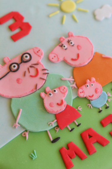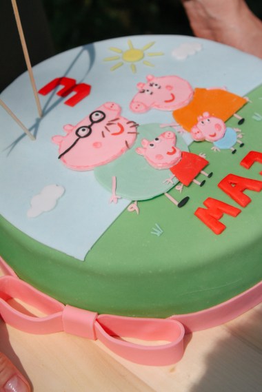Rodzinka Peppy w komplecie. Myślę, że każda dziewczynka przechodzi przez okres zachwytu nad tą kreskówką. Maja w tym roku miała dylemat czy na torcie ma być Psi Patrol czy Peppa, jak widać ta druga wygrała. Wnętrze malinowo – śmietanowe.