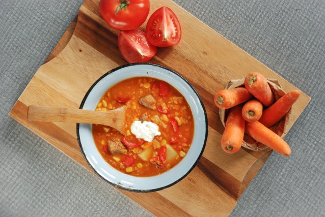 To bardzo treściwa zupa, której bazą powinny być mięso, cebula, marchew i pomidory. Resztę składników możemy modyfikować w zależności co lubimy lub co mamy akurat w domu. Zamiast czerwonej soczewicy można dodać zieloną. Wędzoną paprykę można zastąpić słodką i ostrą, jednak wędzona baaardzo podkręca smak tej zupy i nadaje się idealnie.
